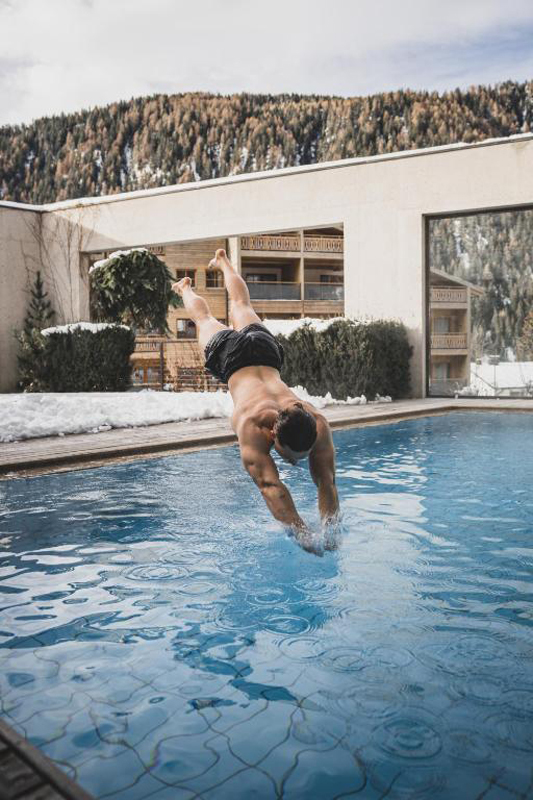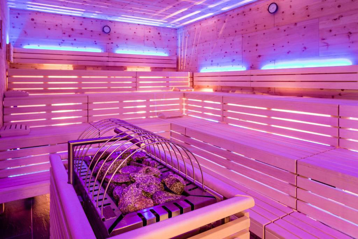venkovní bazén 32°C, vnitřní bazén 32°C, vířivka 36°C, sauna, pára, ledová vana 12°C, hydromasážní sprcha, multifunkční sprcha, relaxační koutek s lehátky, masáže, kosmetické služby, posilovna