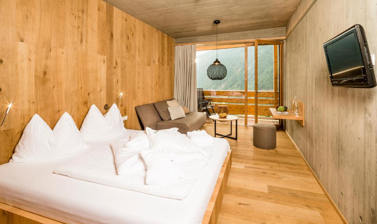 35 m² - pokoj s velkou manželskou postelí, sociální zařízení, balkon s panoramatickým výhledem; pokoj je situovaný v 1. a 2. podlaží