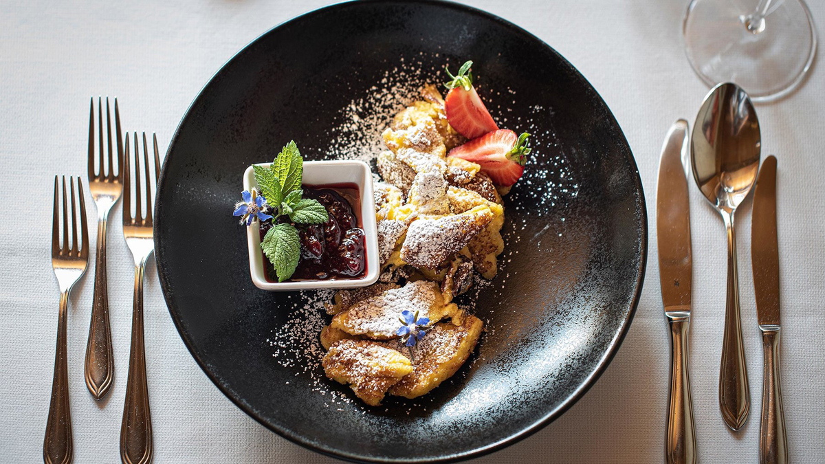 večeře - servírované menu s výběrem ze 2 až 3 teplých předkrmů a 2 až 3 hlavních jídel s přílohou, salátový bufet, servírovaný dezert či ovoce, nápoje za poplatek; nepravidelné tematické večeře