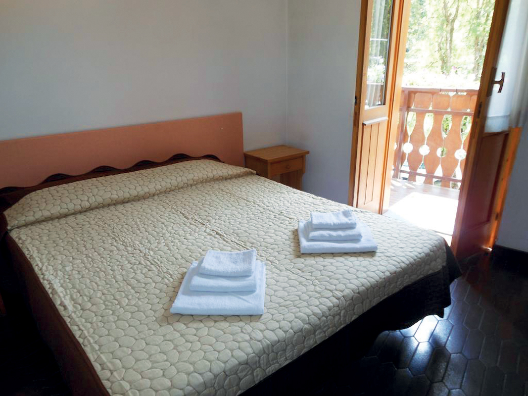 pokoj s manželským lůžkem nebo 2 samostatnými lůžky a 1 dalším samostatným lůžkem, sociální zařízení se sprchou či vanou, zřídka balkon