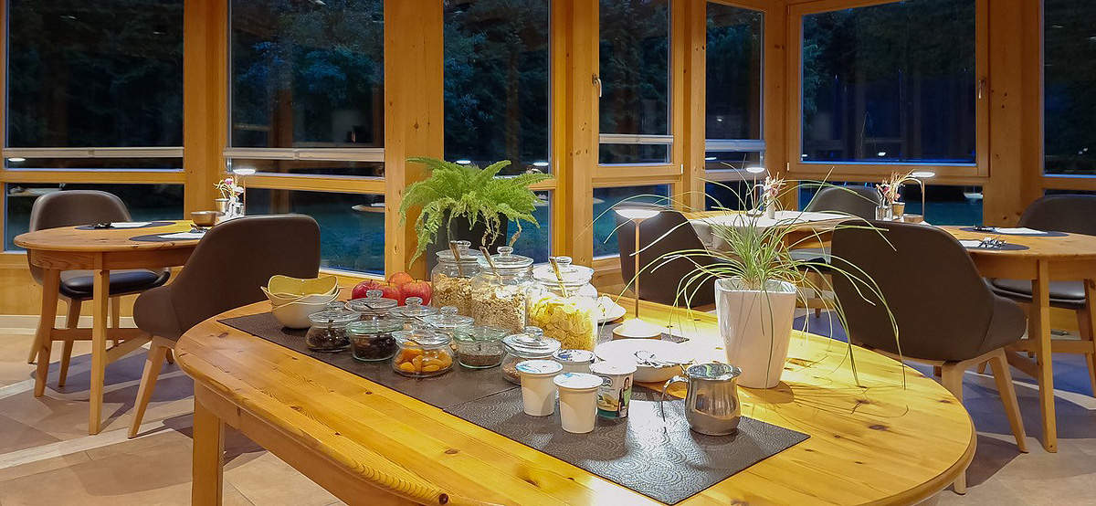recepce / společenská místnost s wi-fi, jídelna pro snídaně, sluneční terasa s posezením, zahrada s posezením, úschovna lyží a lyžařských bot, vyhrazené parkoviště (1 auto/apartmán), možnost garážového stání (1 auto/apartmán), wi-fi připojení k internetu