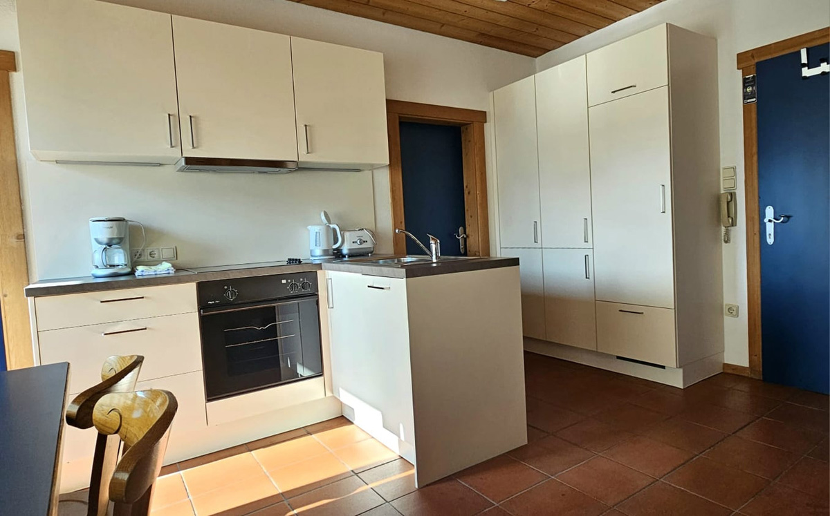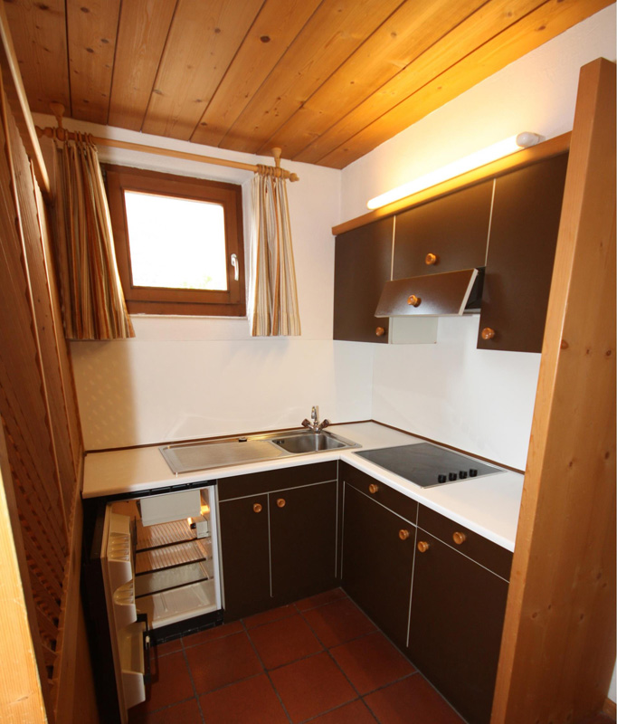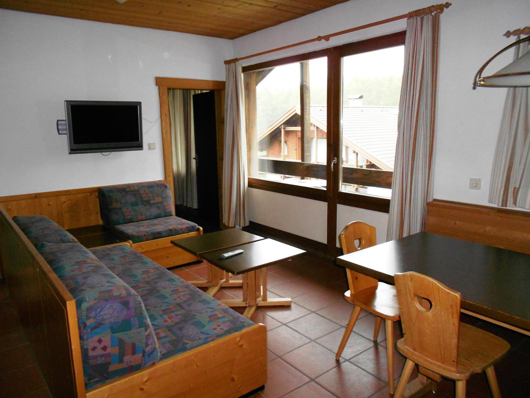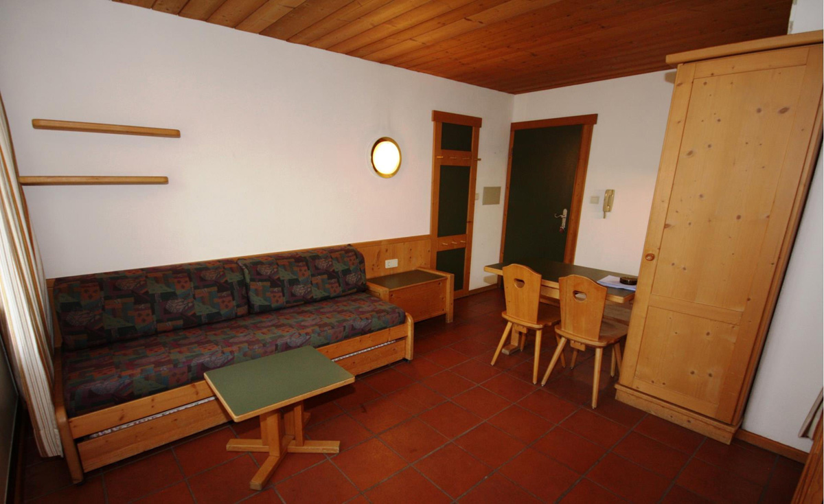obývací pokoj s kuchyňským koutem a manželskou postelí o velikosti 140 cm, sociální zařízení s vanou, balkon či terasa; maximální obsazenost apartmánu je 1 dospělá osoba a 1 dítě do nedovršených 16 let