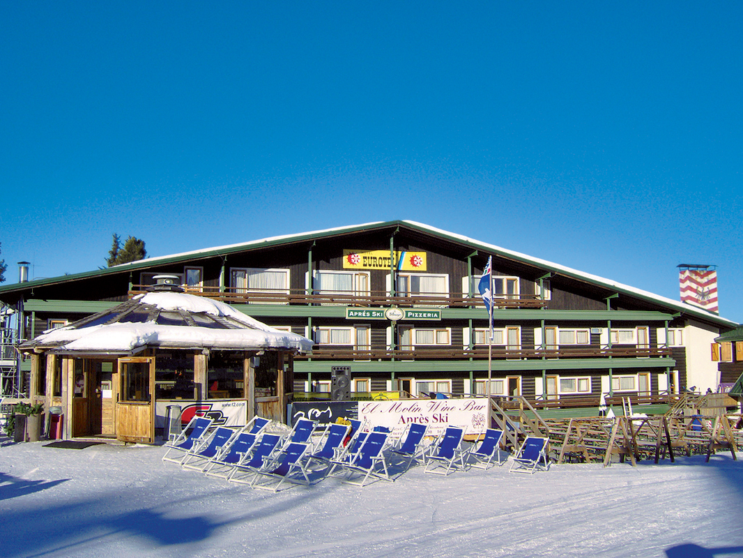 recepce / menší lobby s krbem / bar, restaurace / pizzerie self servis na svahu jen na obědy, restaurace, venkovní apres ski bar u sjezdovky se sluneční terasou a lehátky, společenská místnost s TV sat., menší sluneční terasa s lehátky, dětský koutek, hotelový trezor, úschovna lyží a lyžařských bot, půjčovna a servis lyžařského vybavení