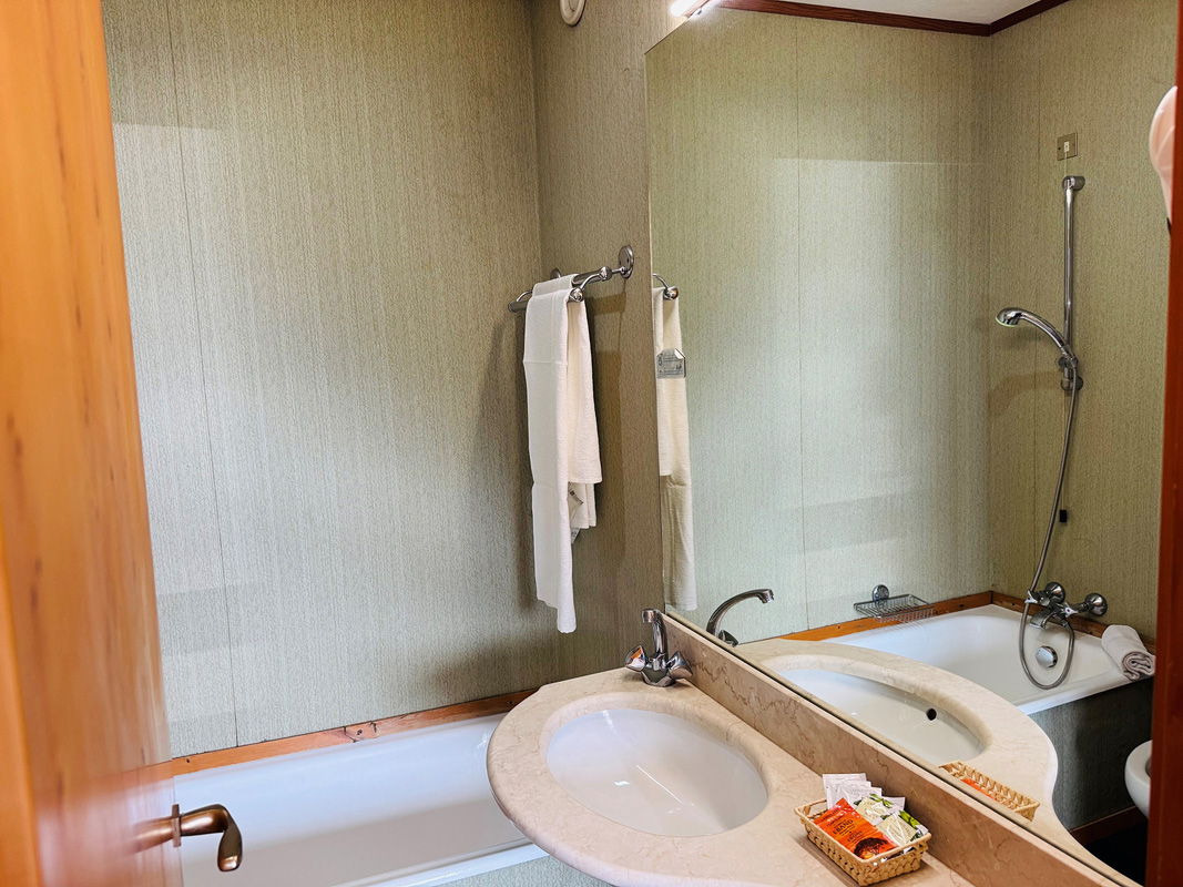 pokoj se samostatným lůžkem či s manželskou postelí a případně rozkládací gauč na lůžko, sociální zařízení se sprchou či vanou, balkon (s výjimkou jednolůžkových pokojů)