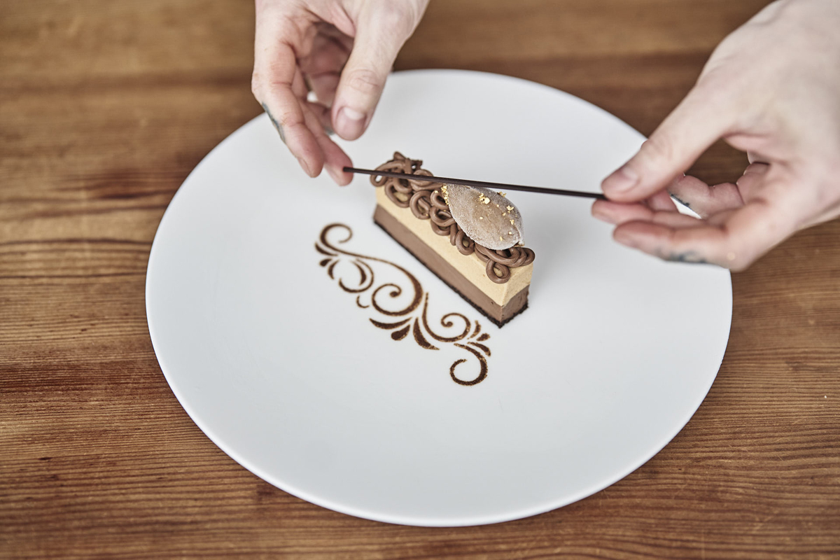 servírované menu (4 chody) s možností výběru studených předkrmů, teplých předkrmů, hlavních chodů a dezertů, domácí pečivo a máslo, minerální voda v ceně, ostatní nápoje za poplatek