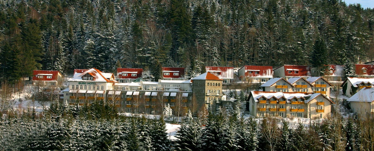 hotelový komplex s bazénem na klidném místě v Bavorském lese