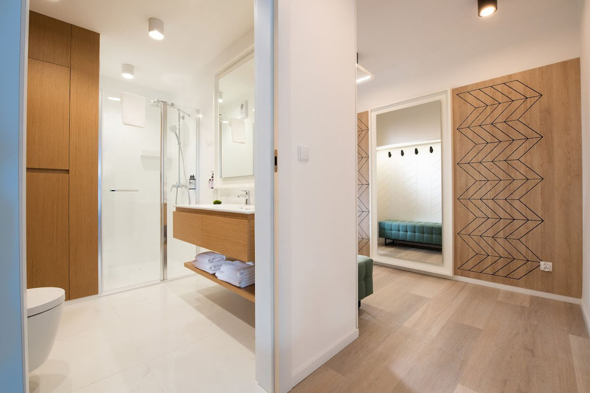 63 m² –větší ložnice s manželskou postelí 160x200 cm, menší ložnice s 1 samostatnou postelí 90x200 cm s výsuvným lůžkem formou přistýlky pro 1 dítě do nedovršených 12 let, obývací pokoj s rozkládacím gaučem formou přistýlky pro 2 děti do nedovršených 12 let, plně vybavený kuchyňský kout, sociální zařízení se sprchou, balkon/ terasa