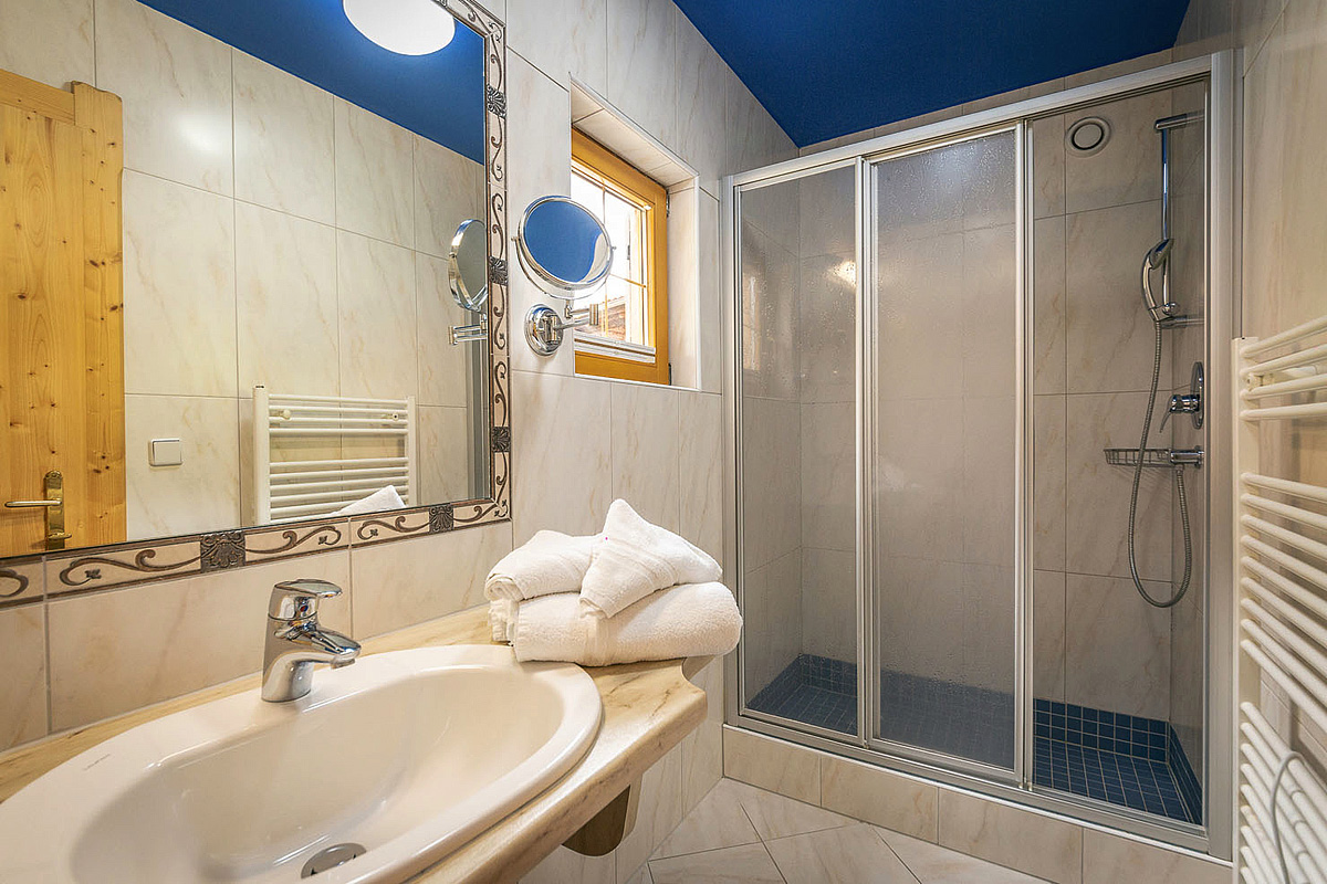 120 m² - 1. podlaží chaletu: malá ložnice s 1 samostatným lůžkem, obývací pokoj s kuchyňským koutem, gaučem a krbem, oddělené WC, terasa; 2. podlaží chaletu: 3 ložnice s manželskou postelí, 1 ložnice se 3 samostatnými lůžky, 2x sociání zařízení, 1x privátní infrakabina zpravidla balkon