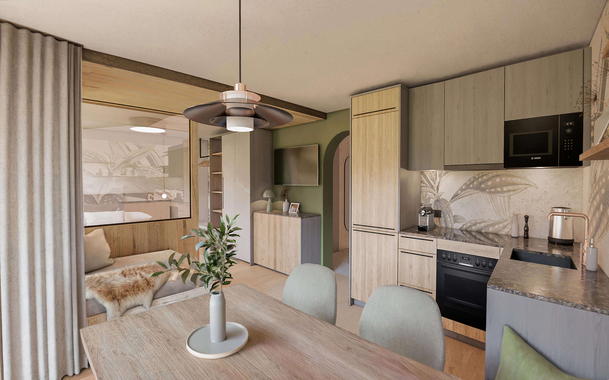 velmi hezky a s návratem k typicky rakouskému rustikálnímu stylu zmodernizovaná apartmánová budova i hotel