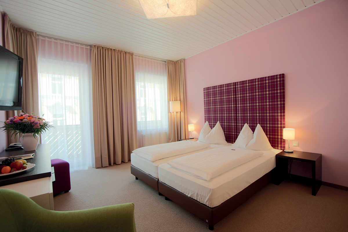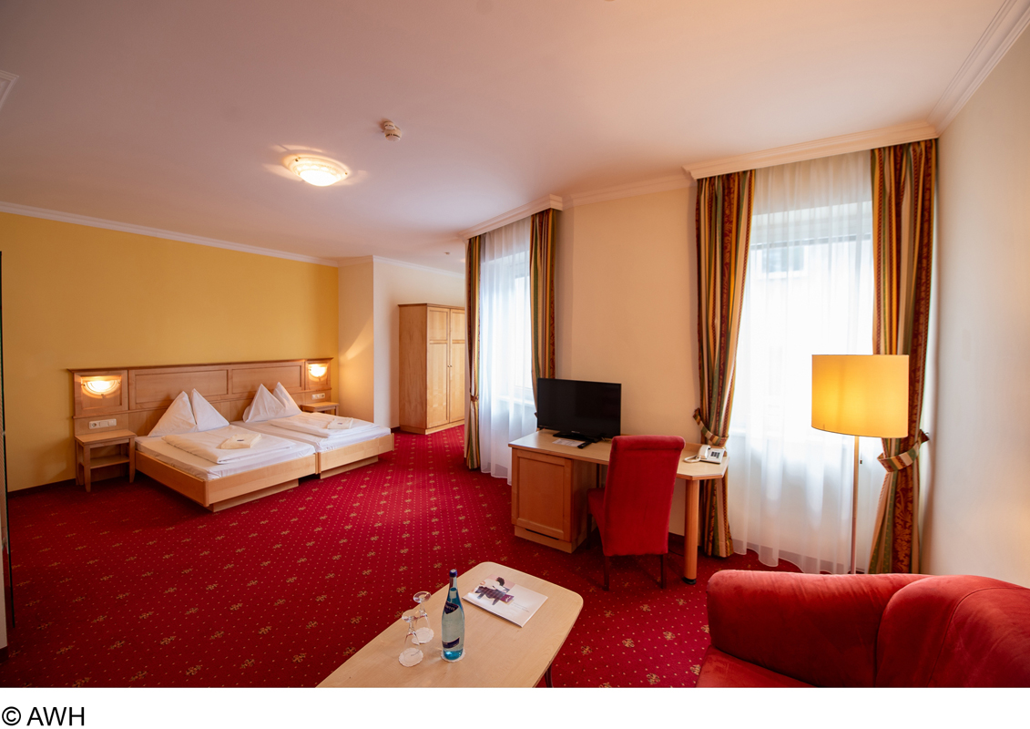 22 m² - pokoj s manželskou postelí a případně 1 samostatným lůžkem či přistýlkou pro 1 osobu, sociální zařízení se sprchou či vanou; infant nad rámec max. obsazenosti pokoje není povolen