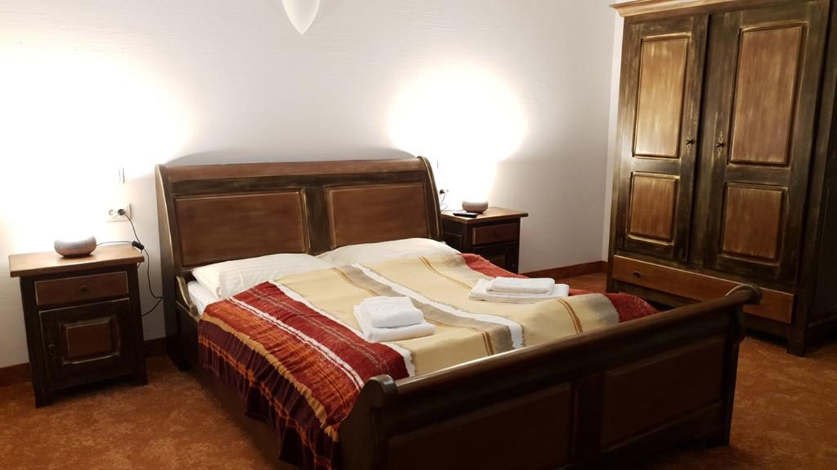 16 až 20 m² - pokoj s manželskou postelí a gaučem pro 1 osobu, sociální zařízení se sprchou či vanou