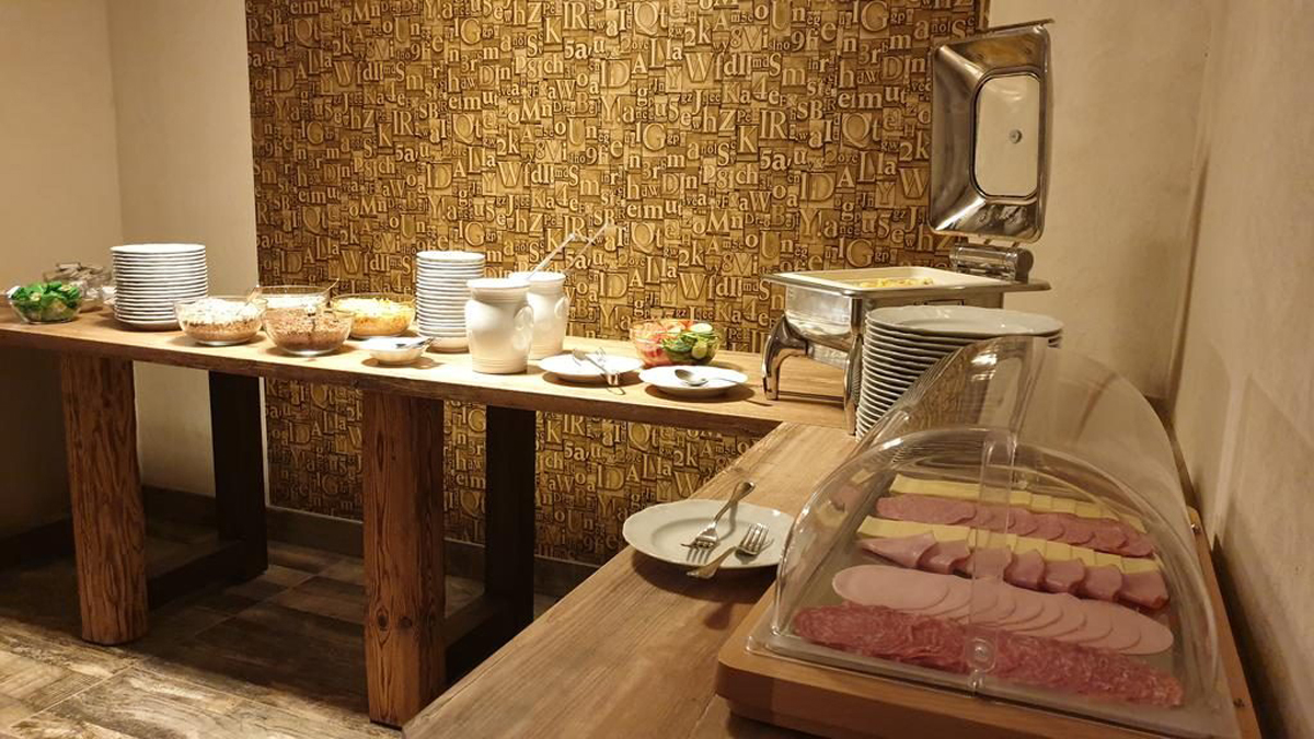 formou bufetu (hlavní jídlo s přílohou, salátový bufet a dezert); hotelový bar není v provozu a není možné zakoupit žádné nápoje, nápoje k večeři je možné donést vlastní do hotelové restaurace ke konzumaci při jídle
