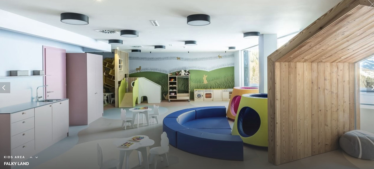 recepce / lobby, restaurace vyhrazená pro hotelové hosty "Stäffa", bar "Infragranti", společenská místnost, wi-fi připojení k internetu, dětský klub Falky Land, dětská herna, dětské kino, dětská lezecká stěna, hlídací služba* dětí (do 3 let), hlídací služba dětí (od 4 do 12 let) / animační programy (v němčině či angličtině) místnost pro úschovu zavazadel, úschovna lyží a lyžařských bot, výtah, vyhrazené parkoviště, garážová stání, půjčovna a servis lyžařského vybavení, lyžařská škola