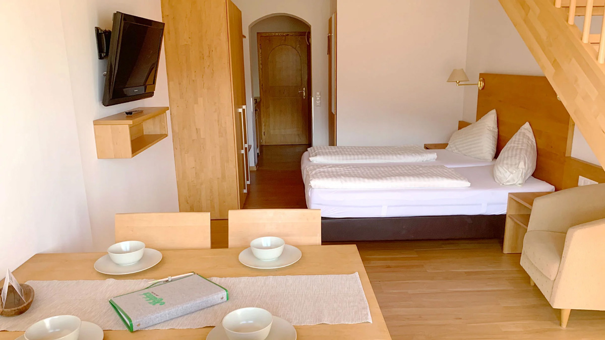 TV sat., fén, mikrovlnka, rychlovarná konvice, kávovar, wi-fi připojení k internetu, župany* na vyžádání na recepci