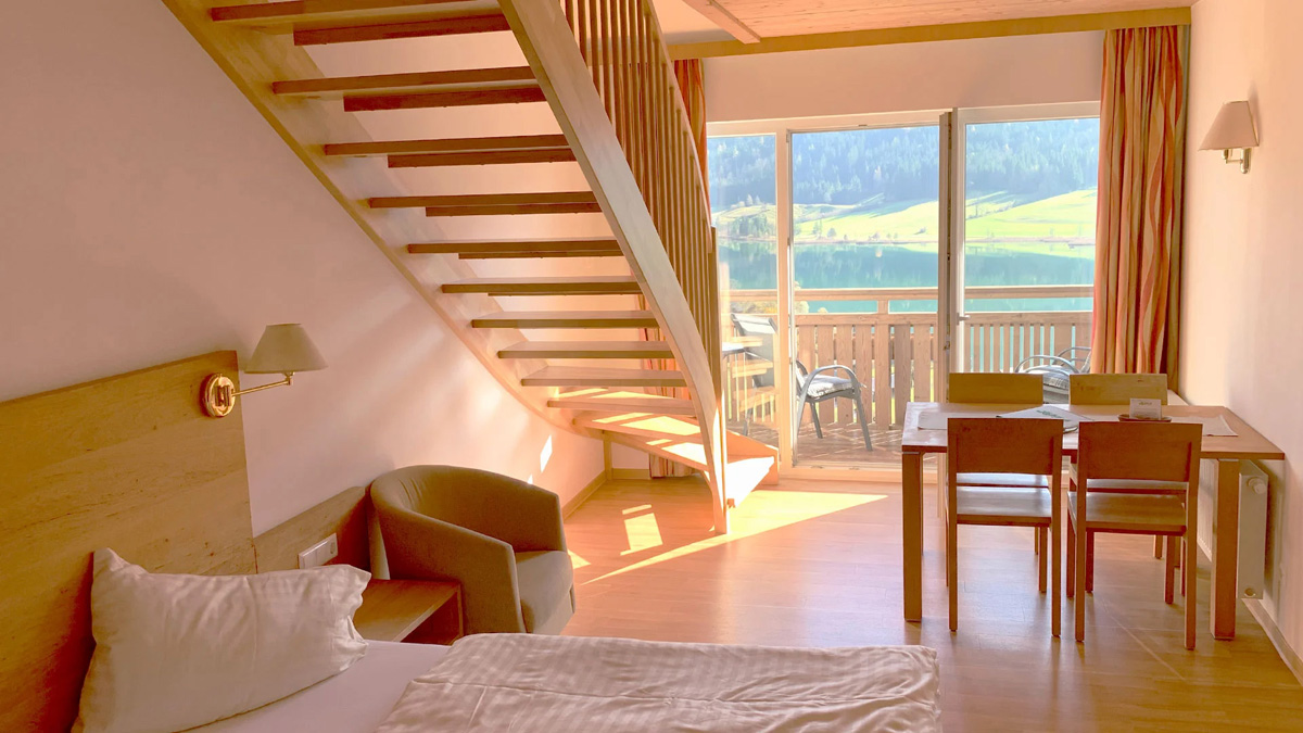 60 m² - obývací pokoj s kuchyňským koutem a manželskou postelí pro 2 osoby, galerie se 2 samostnými lůžky pro děti do nedovršených 20 let, sociální zařízení, zpravidla oddělené WC, balkon s výhledem na jezero
