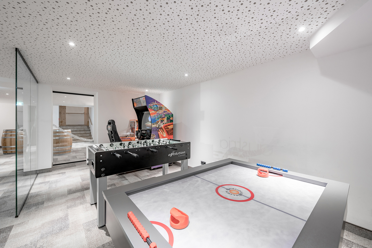 recepce / lobby, restaurace vyhrazená pro hotelové hosty, a la carte Gourmet restaurace*, bar, vinný sklípek, společenská místnost, dětský koutek, sluneční terasa s posezením, wi-fi připojení k internetu, úschovna lyží a lyžařských bot, výtah, vyhrazené parkoviště, garážová stání