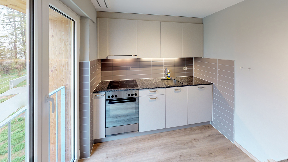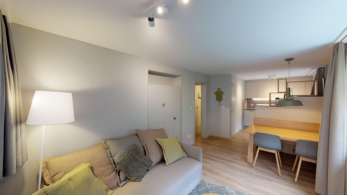 bilo 4 type B - 38 m² - ložnice se 2 samostatnými lůžky, obývací pokoj s kuchyňským koutem a rozkládacím gaučem pro 2 osoby, sociální zařízení, balkon; apartmán zpravidla v podkroví se sešikmeným nižším stropem
